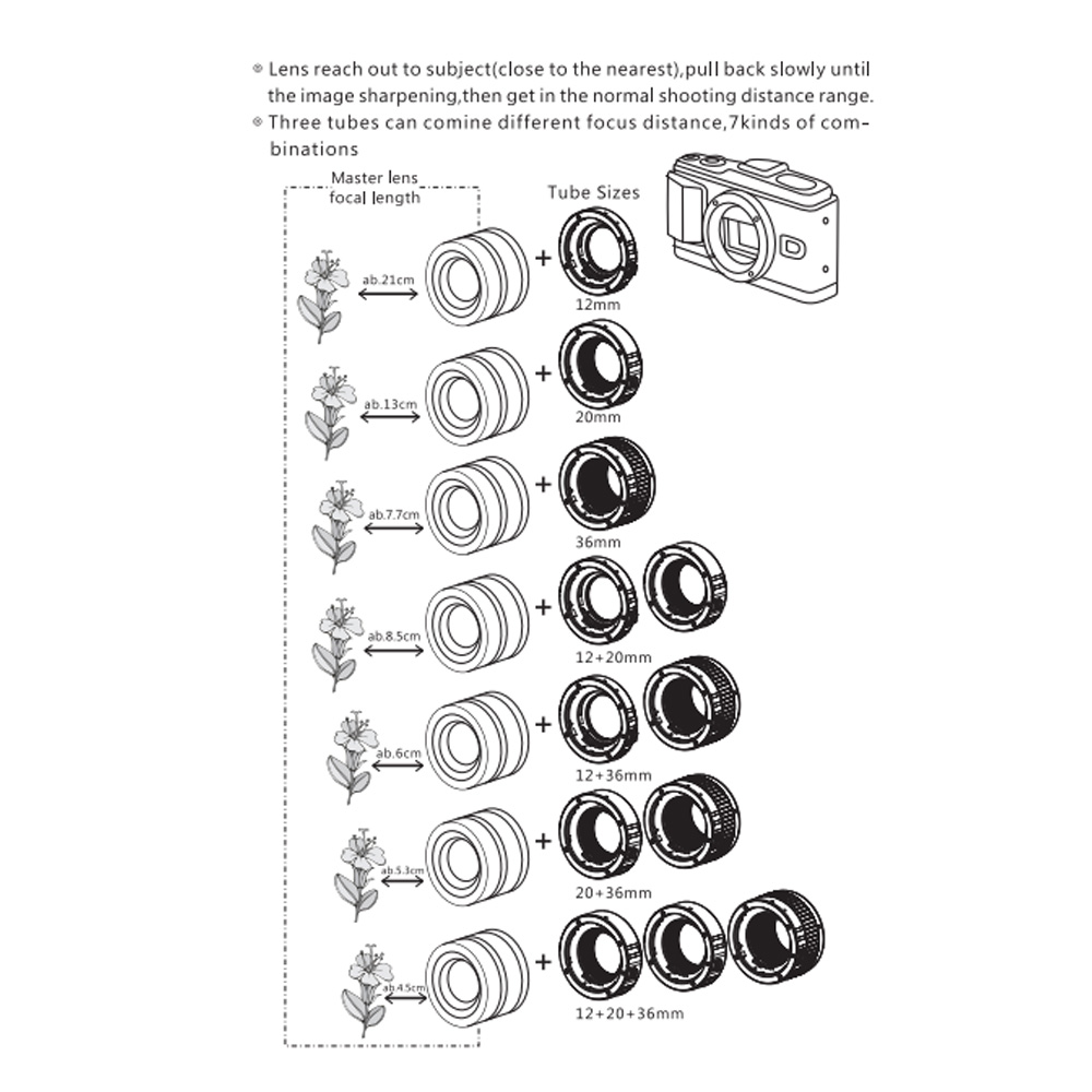This macro extension tube set is suitable for Canon EF/EF-S 35mm Lens.