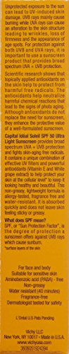 Fragrance-free. Non-greasy and fast absorbing. Does not leave skin feeling sticky. No whitening residue. Water resistant sun screen (40 minutes). Aminobenzoic acid (PABA)-free. Dermatologist tested for safety. Suitable for sensitive skin. Tested under dermatological control. Shake well before use. Apply to face 15 minutes before sun exposure and smooth on gently until product is thoroughly absorbed. Reapply sunscreen after 40 minutes of swimming or sweating. A least every 2 hours immediately after towel drying. Children under 6 months of age: ask doctor. Spending time in the sun increases your risk of skin cancer and early skin aging. To decrease this risk, regularly use a sunscreen with a Broad Spectrum SPF value of 15 or higher and other sun protection measures including: