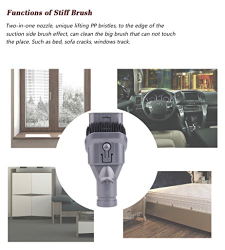 What's in the box: For Dyson Vacuum Attachments(Combination Tools ,Stiff Bristle Brush, Soft Hair Brush, Mattress tool )