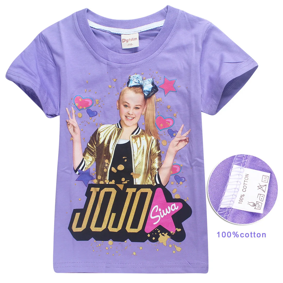4-12Y Summer Fashion Jojo Siwa Baby Girls Tops Tees Short Sleeve T Shirts for Kids Bobo Choses T-shirt and Hair Bow Teen Clothes