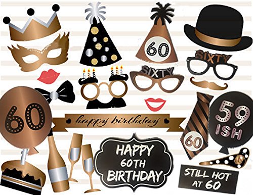 Losuya 60th Birthday Photo Booth Props 23pcs Funny Photobooth Prop for Unisex 60th Birthday Party Favors Dress up Accessories