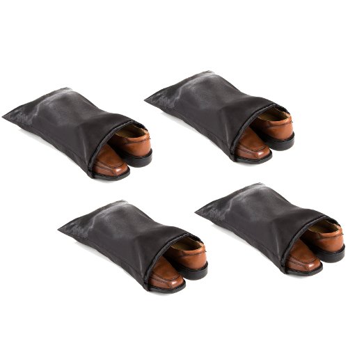 - Feature : Black Balistic Nylon Shoe Bags fitting 4 pairs of shoes (4-Pack) / The bags consist of water repellent soft ballistic nylon. / High-performance fabric resistant to abrasions, tears, and scuffs. / Protects your shoes against scuffs and scraps when storing or traveling. / Made with heavy-duty nylon draw string for closing the top and for easy carrying.