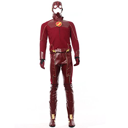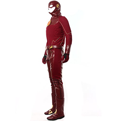 -. Brand : MLYX -. Department : mens -. Feature : PU Leather, Knitted Polyester / Package: Top+Pants+Cowl+Gloves+Boots(please provide us your shoes size) / Alternative Chest Emblem( White or Red), Attachable by Magnet, Easy to be take off and take on / Noted: boots are included, please email us your foot size after placing the order, maximum available shoes size is men's US size 11.5, for larger size than 11.5, just shoes cover is available / Size: Please check the size chart carefully before purchase. If our general size don't fit you, please email us your measurements including height, bust/chest, waist and hips, we can custom made for you -. ProductGroup : Apparel -. ProductTypeName : ADULT_COSTUME -. Title : MLYX Men's the Flash Barry Allen Cosplay Costume Outfit Red