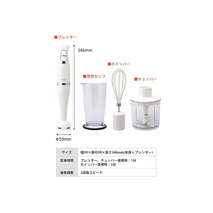 원본상품명: dretec(ドリテック) ハンドブレンダ フドプロセッサ ミキサ マルチブレンダ 離乳食 調理 時短 スムジメカ おしゃれ HM-803 (アイボリ(用カップチョッパホイ