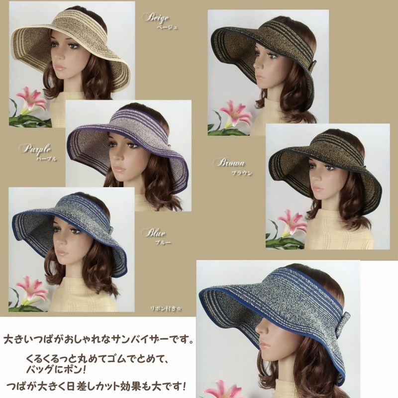 大きいつばがおしゃれなサンバイザーです。