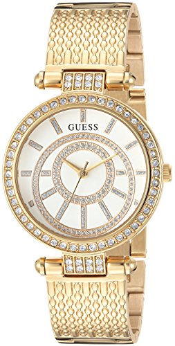 -. Title : GUESS Women's U1008L1 Stainless Steel Gold-Tone Dress Watch with Crystal Accents & Self-Adjustable Bracelet