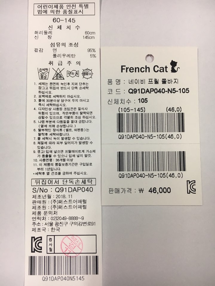 제조자 : 퍼스트어패럴