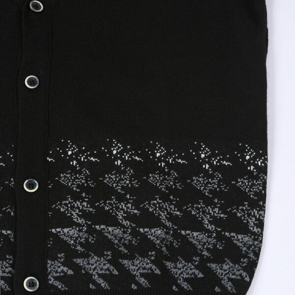 밑단 그라데이션을 적용한 하운드 투스 체크 디테일로 포인트를 준 브이넥 가디건입니다. 탄력성이 훌륭한 아크릴 소재를 적용했습니다. 자개 버튼을 적용한 플라켓 여밈으로 단정한 외관을 보여줍니다. 소매와 밑단은 립 조직을 적용해 편안한 착장감을 전해줍니다. 다양한 아아템과 모던한 룩의 연출이 가능합니다.
