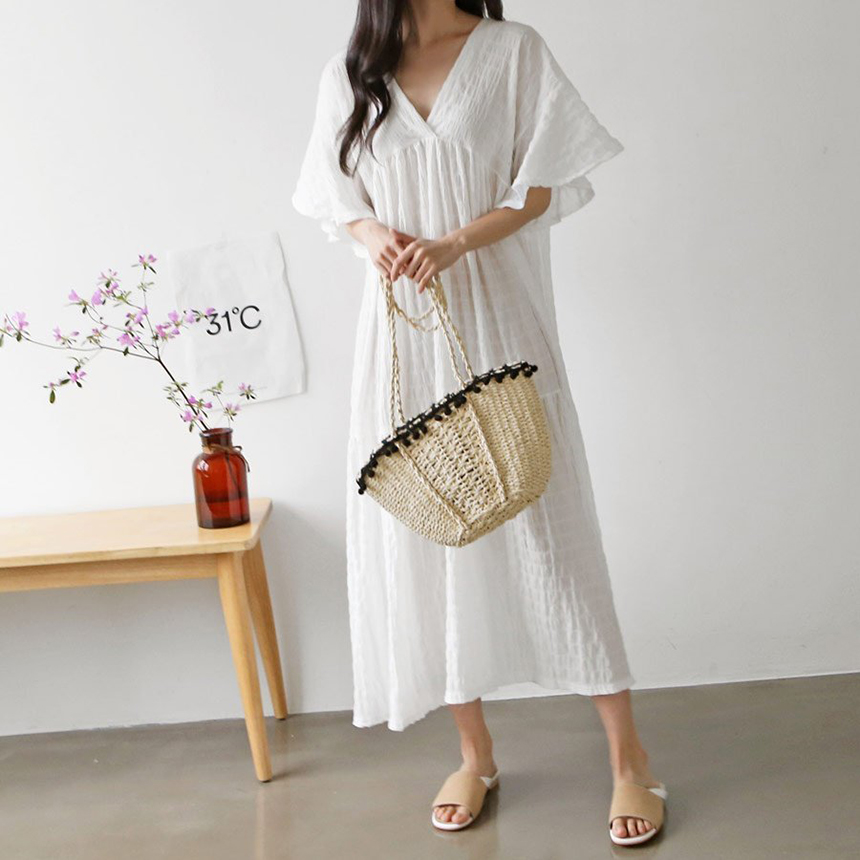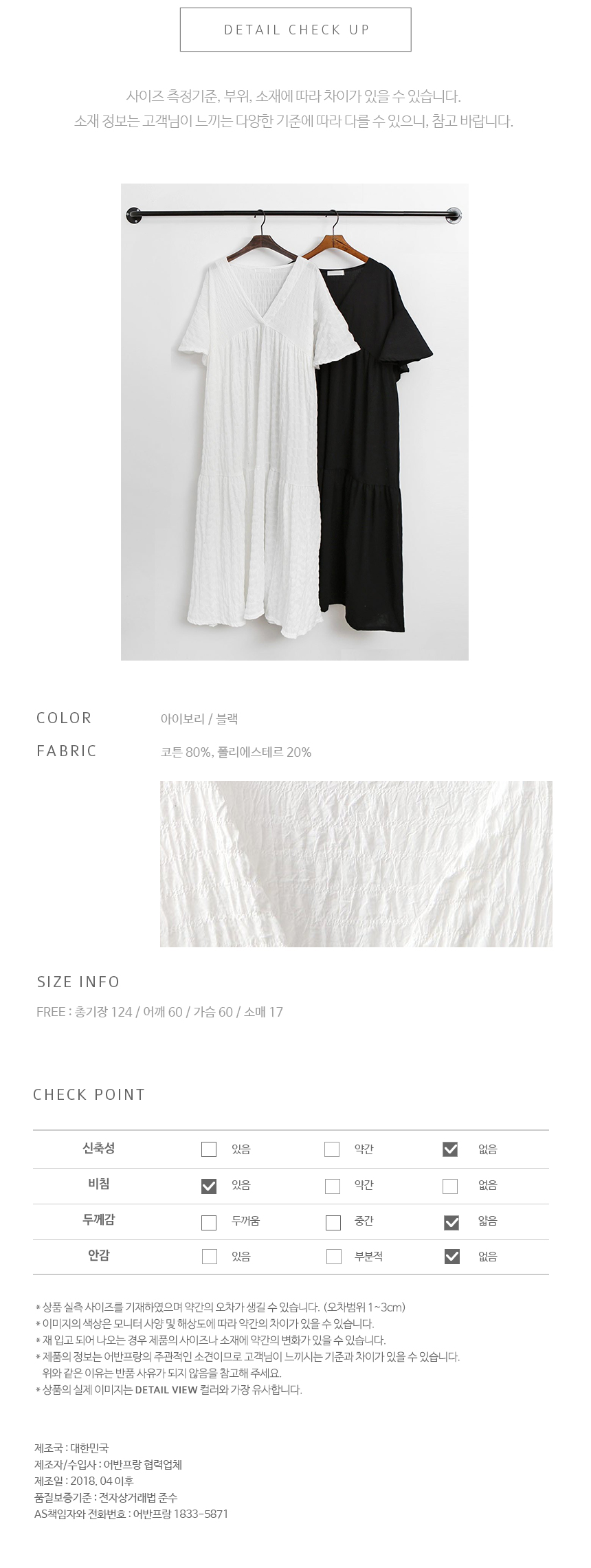 ![]() 베라2 브이넥 캉캉 롱원피스 편안하면서도 여성미 가득한 캉캉 롱 원피스 반팔버전이에요^^ 박시한 핏감으로 체형 구애없이 편하게 착용 가능하며, 디라인으로도 너무 좋아요 롱한 기장감으로 하나만 착용해주셔도 분위기있게 즐겨보실 수 있어요 드레시한 기장감의 원피스로 우아한 느낌이 물씬나구요 러블리하면서도 세련된 느낌의 제품이구요 스니커즈와 캐주얼하게 연출하기도 좋구요 우아하게 연출해도 잘어울리는 원피스예요! 컬러는 아이보리와 블랙 2가지로 준비되어있구요 베이직한 컬러감이라 무난하게 어디에나 잘어울려요 사이즈도 낙낙해서 FREE 44-77사이즈 권해드려요♡ Model : AJ. 165cm . 55size Fitting : 화이트, 블랙 / FREE