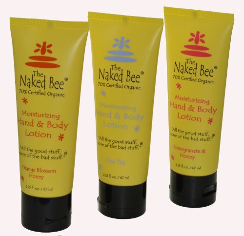 -. Feature : Naked Bee 3 Pack of 2.25 Oz Hand & Body Lotions / Fragrances Featured: Orange Blossom Honey, Pomegranate & Honey, and Chai Tea / Great for On The Go Use! / Naked Bee Products are Phthalate-Free, Gluten-Free, and Paraben-Free / No Animal Testing, No Drying Alcohol, No EDTA, No Dyes or Pigments