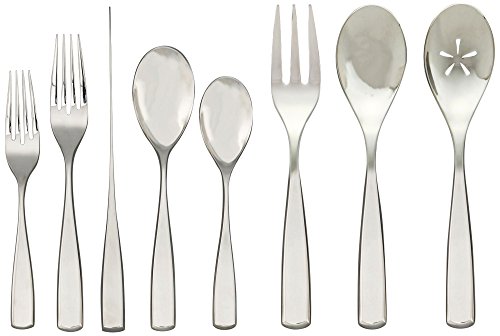 - Set includes: 8 each: Dinner Knife, Dinner Fork, Salad/Dessert Fork, Soup/Cereal Spoon, Plus 2 Serving Spoons and 1 Serving Fork