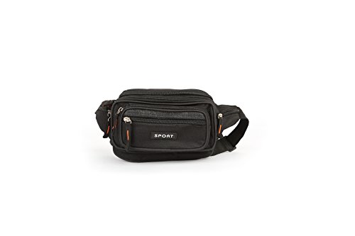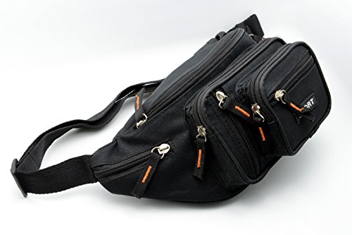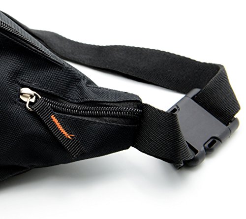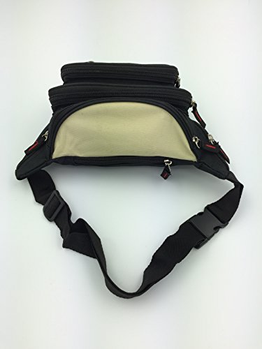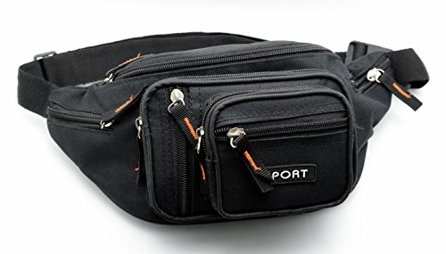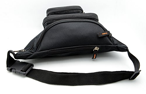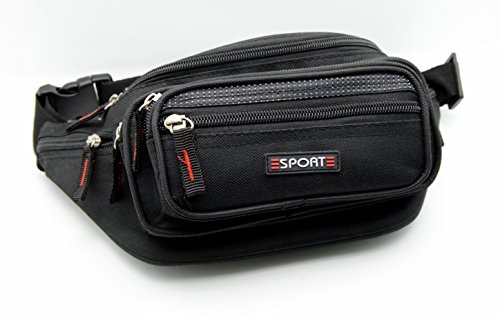 Product Description Sport this large size fanny pack on vacation, sporting events or walking. The pack is constructed with durable 600 Denier Polyester. It has many zipper compartments that will hold more stuff than our medium size. This item can hold a cell phone, wallet, keys and a lot more. You can keep your hands free, yet it is small enough not to be in the way. Also, it has a key ring attachment so you can easily find your keys. The fanny pack measures 31*16*7.5 cm 0