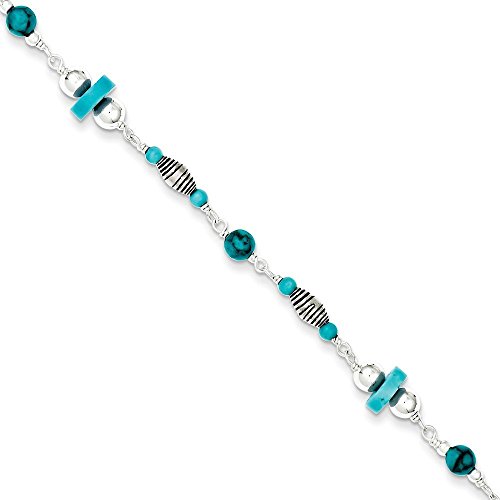 -. Title : Sterling Silver Turquoise Anklet Bracelet 9 Inches