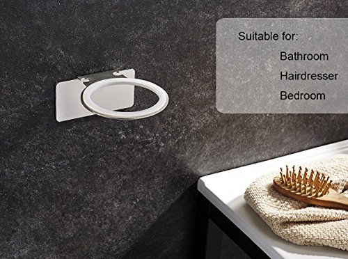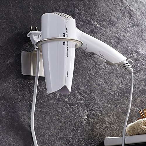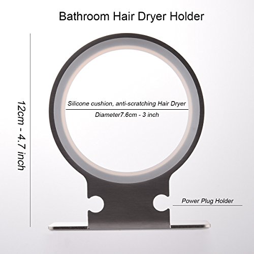 Bathroom Hair Dryer Holder Wall Mount, Adhesive Storage Organizer for Hair Blower with Plug Stand, Stainless