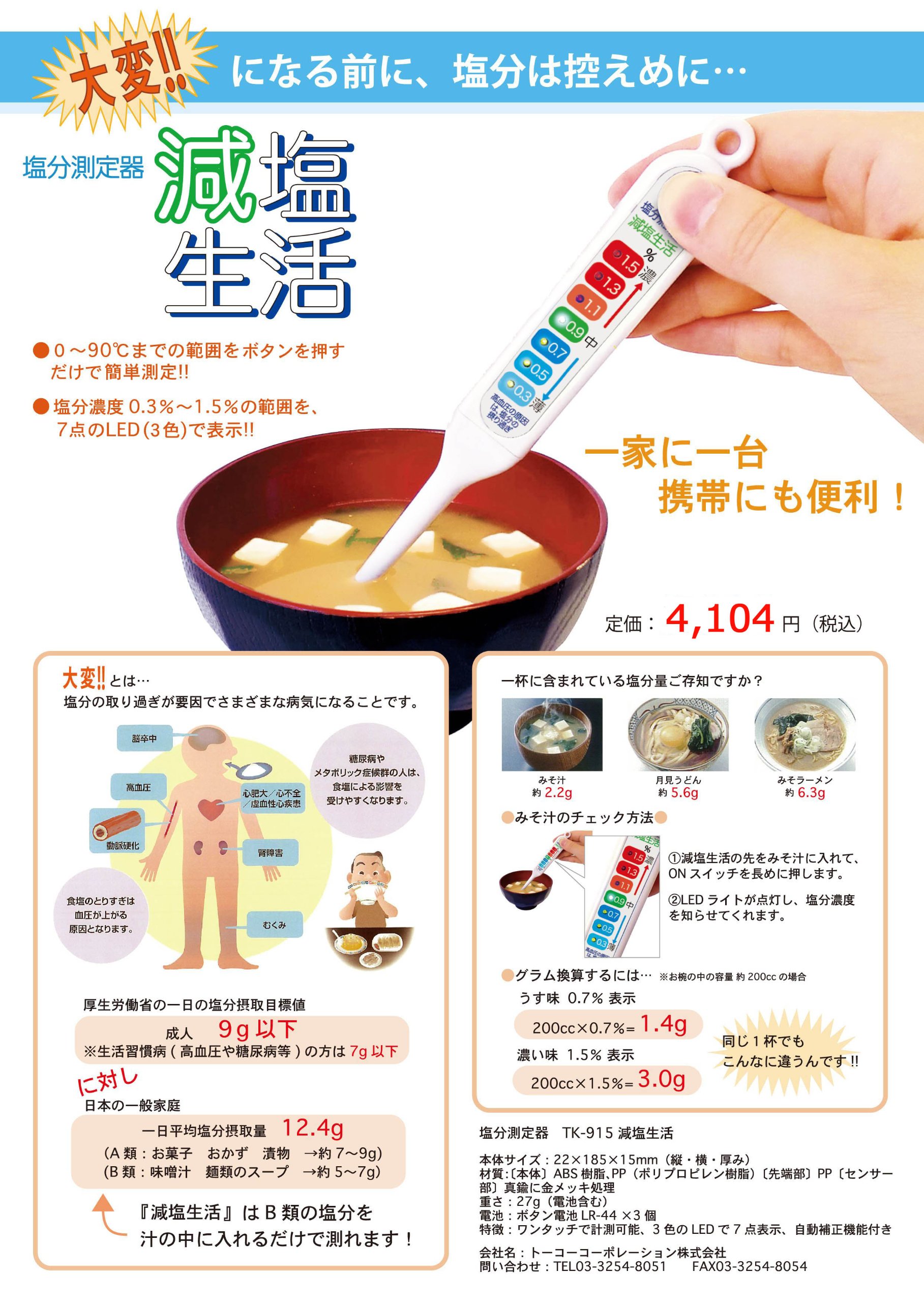 This instrument measures the concentration of salt dissolved in water such as miso soup and soup.