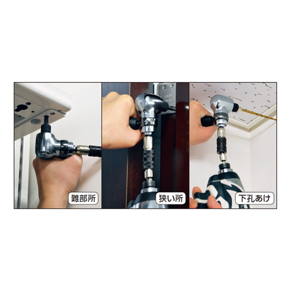 ●ジョイント式なので電動ドリルの角度が自由に変えられ、狭い場所での作業に最適。
