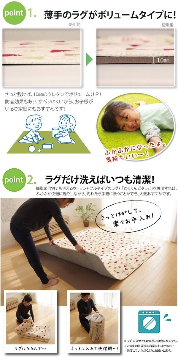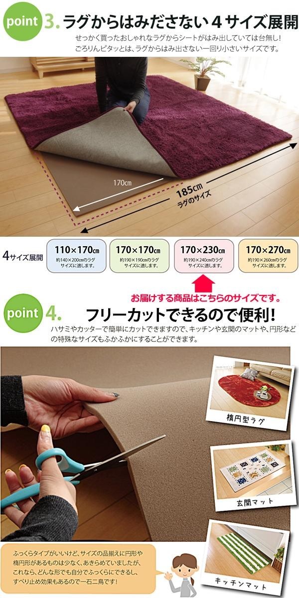 | カーペットの下に敷くだけで、ふんわり柔らかい感触になります。 |