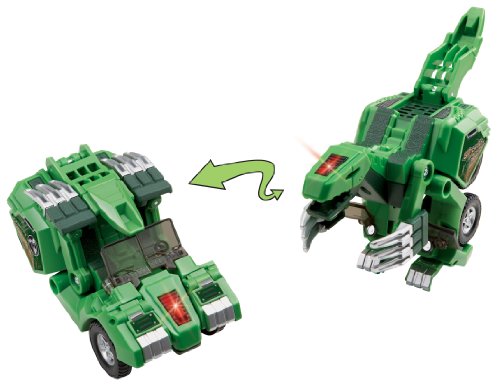 -. Feature : 2 modes of play - Dino mode & Vehicle mode / Red off-road vehicle tranforms into a wild Therizinosaurus in 4 - 5 easy steps / Press the Talk button to learn interesting dinosaur facts / Light emits from dino eyes / Realistic sound effects enhance play