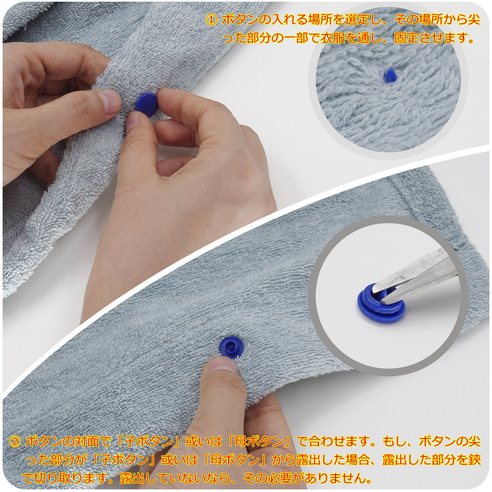 If the pointed portion of the button is exposed from the "child button" or "mother button", cut the exposed part with scissors.