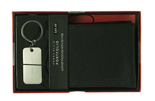 Perry Ellis Portfolio Super Soft Leather Passcase with Key Fob Black