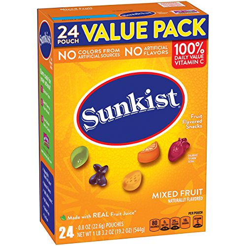Sunkist Fruit Snacks, Mixed Fruit Gluten Free Snacks, Value Pack, 24 Pouches, 0.8 oz Each (Pack of 3)