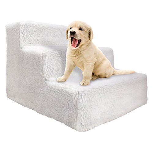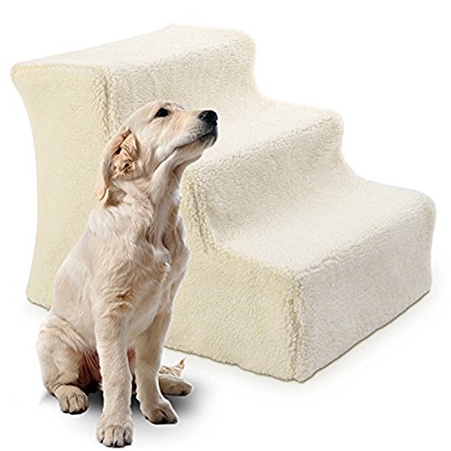 Studio : Imperial Home Publisher : Imperial Home Binding : Misc. Product Description Sturdy pet steps help your pals get safely to a favorite spot and keeps them from straining their back. Pet Steps are a 3-step unit, essential for small dogs or cats struggling to join you on the couch or bed, and ideal for older pets with hip or joint problems. They also ensure that your furry friends can climb securely into your car or truck, and they save you from having to bend down, bend over, and otherwise hurt your muscles. It has a metal construction and non-skid plush surface. Hand-washable faux sheepskin cover looks and feels like the real thing. Pet ladder assembly is required. It can be collapsed down to 3 inches in height for easy storage. Its light enough to be portable when you take your pooch on the road with you. Portable pet steps measure 14 inches wide, 12.5 inches high, and 17.25 inches deep. 0
