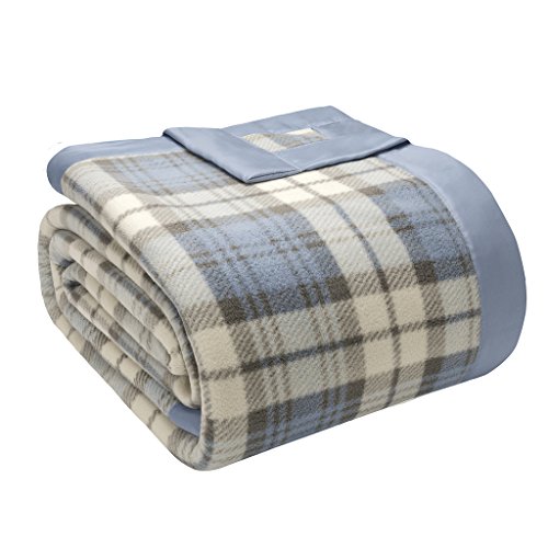 True North by Sleep Philosophy Micro Fleece Blanket, King, Blue Plaid