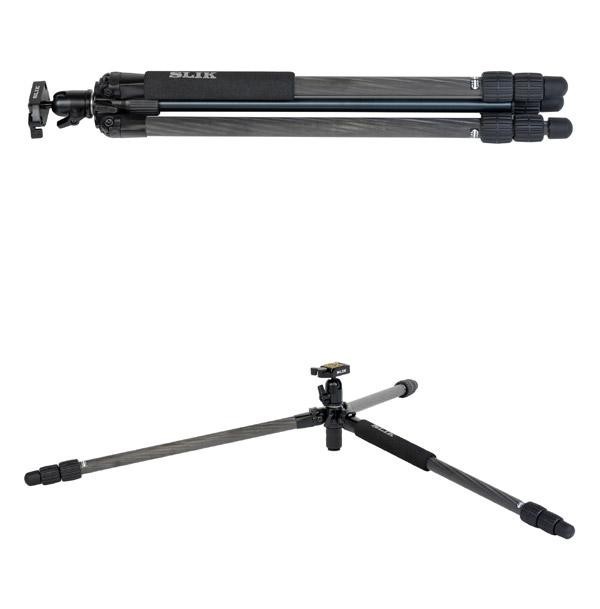 | 1kgを切る軽さ!!軽快な自由雲台付きカーボン三脚。カメラの着脱はクイックシュー。ローポジションを含め3段階に開脚する、マルチポジション仕様。ウレタングリップは1本の脚のみ装備。 |