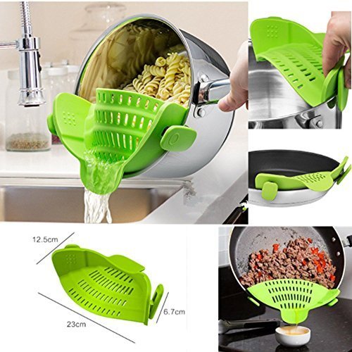 Studio : ZSWELL Publisher : ZSWELL Product Description Description: * The specially designed clips will fit nearly all round pots, pans and bowls big and small (yes, even the ones with a lip). * Small, compact strainer that is easy to use and store in a quarter the size of the traditional colander. Great when working with limited counter space. * The innovative unique design helps free up your hands so you can use them to hold on to the handle/s of the pan for better control. * Completely BPA Free, Dishwasher safe and FDA approved. Made from top-quality silicone . * With our 1 year warranty. As long as they were purchased new on Amazon, we will replace it free of charge. Warranty only valid for defects in materials or craftsmanship, any damages caused by misuse will void the warranty. Feature: * Size:12.5*23cm Package * 1* Strainer