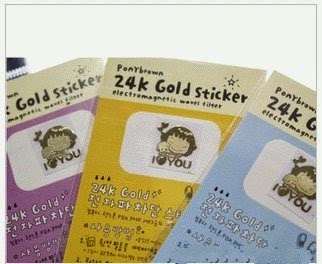 Made from a mixture of nickel , platinum and 24K gold , this metal sticker can protect Eletro - magnetic radiation from electrical devices . To use it , this sticker affixed enough mobile devices , tablet , desktop computer , or other device that emits electromagnetic radiation . Its small and cute pictures can all be used as garnish