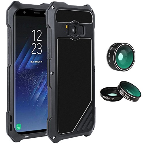 Samsung Galaxy S8 Plus Lens Kit Case, SHEROX - 3 in 1 198° Fisheye Lens + 15X Macro Lens + Wide Angle Lens with IP54 Dustproof Shockproof Aluminum Case for Galaxy S8+ (Black)