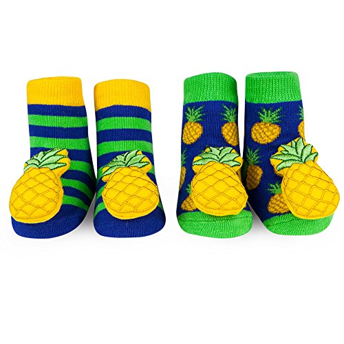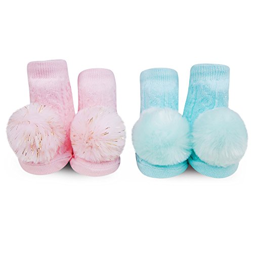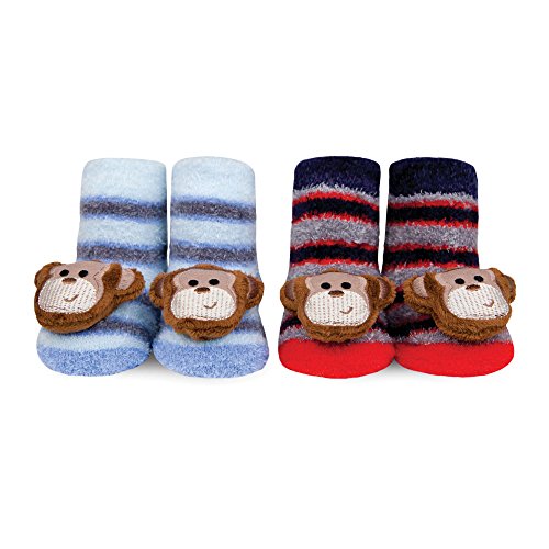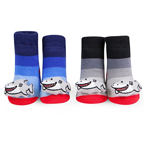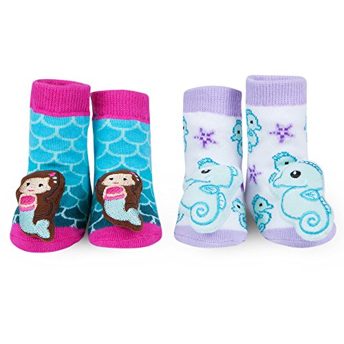 BABY RATTLE SOCKS: Each pair of crew socks has soft elastic on the top and are machine washable. Baby socks fit newborns 0-12 months. Each pair of baby booties come in a Waddle and Friends gift box.