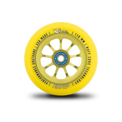 Studio : River Wheels Publisher : River Wheels Binding : Misc. Product Description River Wheels scooter wheels are high quality scooter wheels, which are an obvious necessity on your scooter. 100mm scooter wheels are a smaller wheel and provide the rider with more control than a 110mm scooter wheel, which is used for maximum speed. All forks that we carry fit both 100mm and 110mm scooter wheels. Made by a high-end manufacturer like River Wheels Scooters, you can be sure you will be pleased with both the quality and price point of these scooter wheels River Glide Wheels are a new wheel offering from Proto. The Glides are flow fast and smooth as a river, which makes Glides ideal for riding park. 0