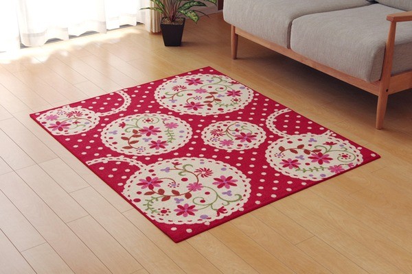 【商品名】デスクカーペット 女の子 花柄 『パミュ ツー』 レッド 133×170cm