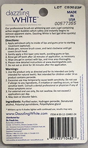 -. Binding : Health and Beauty -. Brand : Dazzling White -. Feature : Dazzling White Professional Strength Teeth Whitening Pens Two Pack Instant USA -. MPN : B00MTDUHHM -. PackageQuantity : 1 -. PartNumber : B00MTDUHHM -. ProductGroup : Beauty -. ProductTypeName : HEALTH_PERSONAL_CARE -. Title : Dazzling White Professional Strength Teeth Whitening Pens Two Pack Instant USA