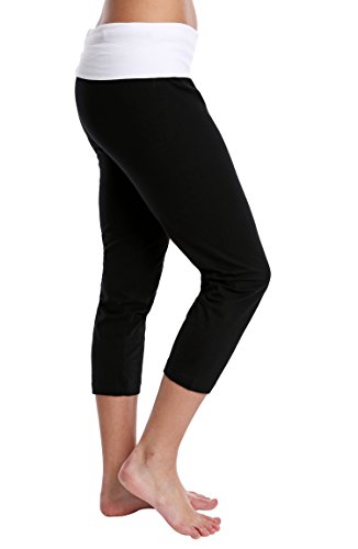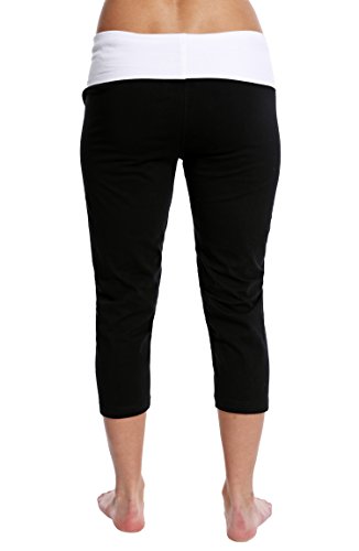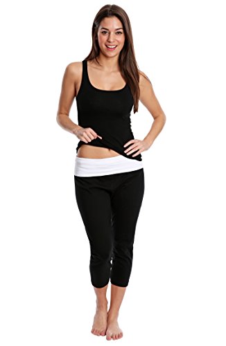 -. Title : Nouveau Women's Workout Active CaP.R.I Yoga Pants with Contrasting Color Waistband Casual Loungewear