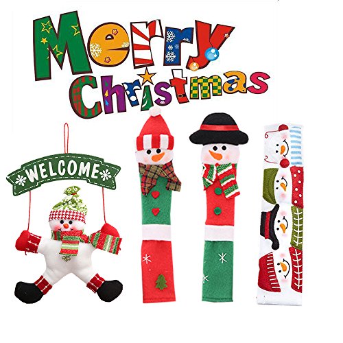 Snowman Kitchen Appliance Handle Covers Christmas Handle Protector 3 Packs with Gift Snowman Welcome Ornament for Holiday Season Decoration