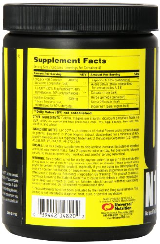 ReleaseDate : 2006-07-05 Studio : Universal Publisher : Universal Binding : Health and Beauty Product Description Natural testosterone formula. Advanced test-stim complex. Maximum absorption. Patented LJ-100. Natural test complex. N1-T: Natural testosterone formula. N1-T is a complete and potent pro-testosterone formula that harnesses the power of three special extracts of tribulus (protodioscin), patented longjack (Eurypeptides), and avena (avenacosides A and B). The ingredients in N1-T have been shown in actual human clinical trials to nearly double testosterone, increase free testosterone, decrease SHBG (sex hormone binding globulin), increase IGF-1, and modulate cortisol levels. With an increase in total and free testosterone, you can expect more from your body and from your training. SO the next time you're looking to add gains, train hard and look to N1-T. (These statements have not been evaluated by the Food and Drug Administration. This product is not intended to diagnose, treat, cure or prevent any disease.) 0