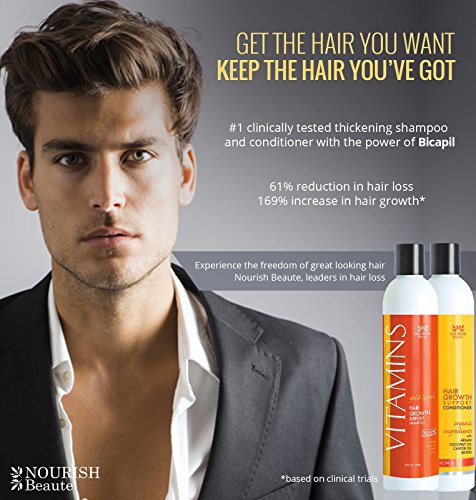 NEW! PREMIUM Vitamins Hair Growth Shampoo and Conditioner - Tested in Clinical Trials, Proven in Customer Results - by Nourish Beaute