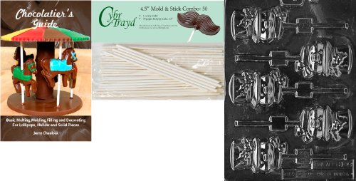 Cybrtrayd 'Snowman with Hat Lolly' Christmas Chocolate Candy Mold with 50 4.5-Inch Lollipop Sticks and Chocolatier's Guide