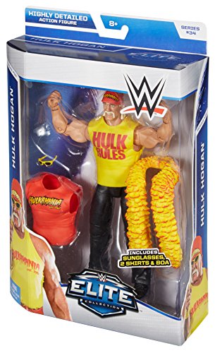 -. Binding : Toy -. Brand : Mattel -. EAN : 0887961086683 -. Feature : Featuring all of the WWE's biggest personalities and Champions / These bold and colorful figures come ready to wreak havoc right out of the box! / Each figure has deluxe articulation and detailed character expressions / Authentic ring attire and iconic accessories / Pair them up and let the battles begin! Each sold separately, collect them all! -. IsAdultProduct : 0 -. Label : Mattel -. Manufacturer : Mattel -. Model : CHR41 -. MPN : CHR41 -. PackageQuantity : 1 -. PartNumber : CHR41 -. ProductGroup : Toy -. ProductTypeName : TOYS_AND_GAMES -. Publisher : Mattel -. Studio : Mattel -. Title : WWE Elite Collection Series #34 -Hulk Hogan Action Figure -. UPC : 887961086683 -. Warranty : 1 year warranty against manufacturer defects