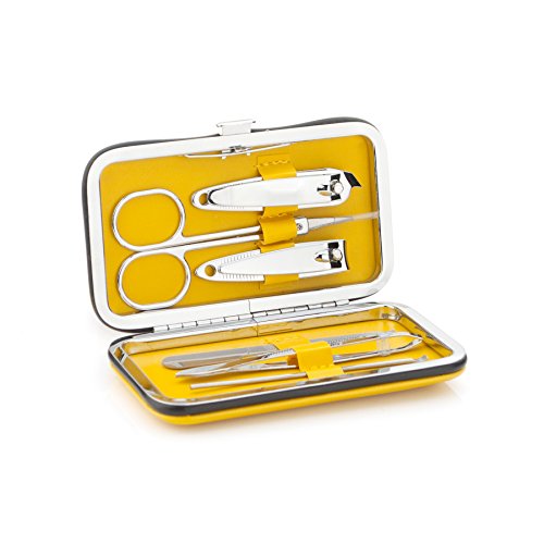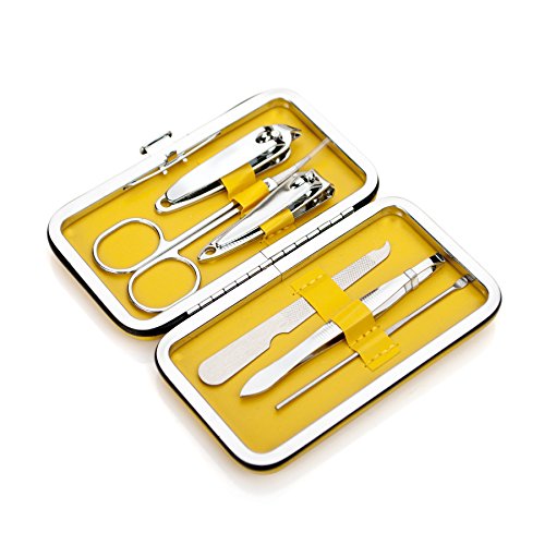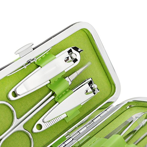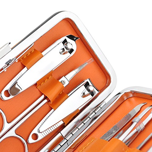 -. Feature : Brand New and High Quality Stainless Steel / Includes nail nipper, cuticle pusher, folding nail file and other necessities / Color options come with red, pink, black, cambridge blue, orange and purple / Compact and easily portable, ideal for travelling, gifts & more / Affordable P.R.Ice with 6 pcs manicure tools and 1 leather case