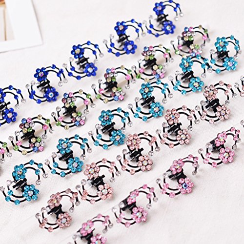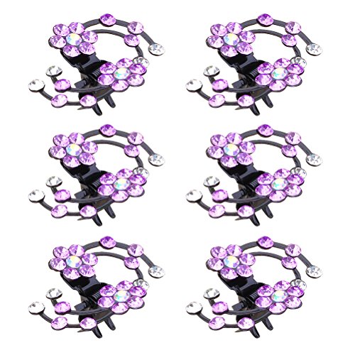 Frcolor Mini Hair Clips Metal Mini Jaw Clip Blossom Rhinestone Crystal Claw Hair Clip, 6Pcs (Red)