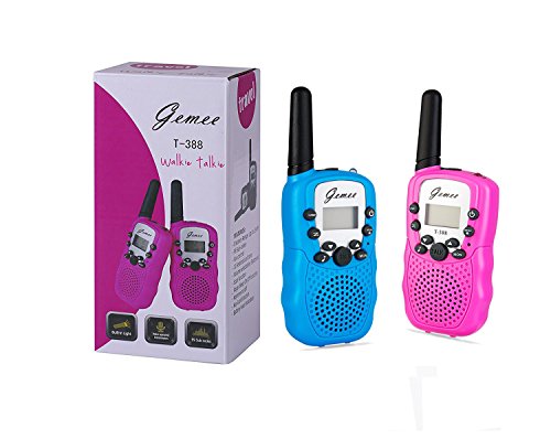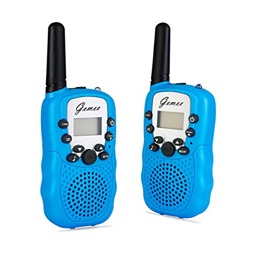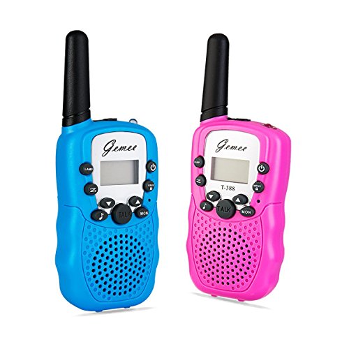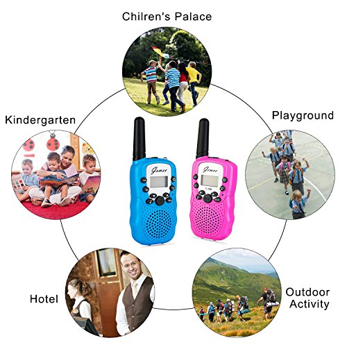 Good Sound Quality : Auto scan feature will find the clearest channel and squelch function automatically, which will mute the background noise so you get the crisp sound even in crowded places Easy To Use --- Modern compact design. Simple push to talk operation, double click to activate a beep single. Broadcast to one or multiple units, ability to use different channels GENEROUS RANGE: Set of 2 included. up to 3km (MAX 5km open field)Simple push to talk operation, double click to activate a beep single. Broadcast to one or multiple units, ability to use different channels LCD DISPLAY - (Channels/CTCSS/Battery status ) LCD backlit display indicates current channel, and battery status. The LED Screen backlit makes it convenient to use at night COMPACT AND SMALL SIZE: Funny and cute, Simple to use, the best gift for kids up 3 years old. Mini palm size make it easy to handle and carry around. Extra straps hanging on neck to relieve their hands Our walkie talkie is a cool gift for your kids, with it, the kids can talk to the neighbor friends at home and discuss where they can go to play together, or they can cosplay the cops with the walkie talkie, just make sure they are in the same channelFeature