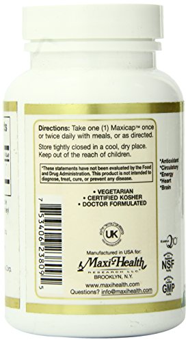 -. Feature : PURE & POTENT : Combination of high quality ingredients, selected for effectiveness, formulated to support the heart and gums. / SUPPORTS Antioxidant protection against cell damage. / ENHANCES and Increases available energy at the cellular level. / VEGETARIAN, Gluten Free, No Artificial Flavors, Colorings or Preservatives. Kosher Certified. / SAFE: Made in the USA, Manufactured in a NSF & FDA registered and GMP Certified Facility : MaxiHealth Was Established in 1974.