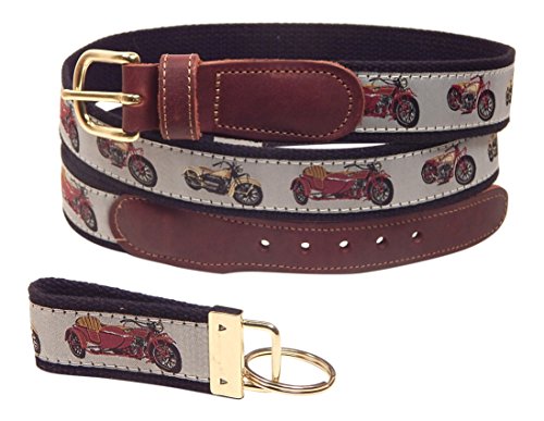 (Preston Leather)/Accessories/Belts Buckles/DIRECT FROM USA/Preston Leather “Motorcycles” Belt, Black Web, Sizes 30 to 50, FREE Matching Key Ring