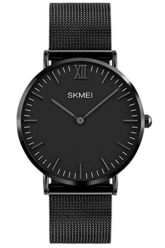 -. Title : Mens Simple Fashion Slim Black Stainless Steel Analog Quartz Watches