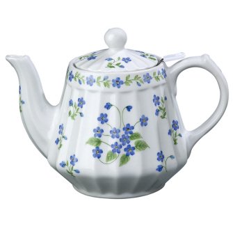 -. Title : Andrea By Sadek 6"h Blue Forget Me Not Teapot with Mesh Strainer