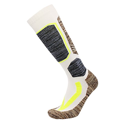 -. Binding : Apparel -. Brand : 1PlusOne -. Color : White/Khaki -. Department : mens -. Feature : High Quality Material- The ski socks uses special high quality cotton yarn material, more soft,stretchable and durable. / Dynamic Cushioned Protection-Advanced knitting skills ensures the ski socks with cusion in the arch, ankle,shin and toes, providing the ultimate comfort from the rigid ski boots. / Excellent blend of thickness and warmth- Our ski socks fit your ski boots normally while keeping your feet warm in blizzard condition. / Stay-up skiing socks- The elastic top of the ski socks help prevent it from sliding down, ensuring you a trouble-free snowboard activity. / Odor -free Property reduces the growth of bacteria in your ski boots, your feet feel fresh all day while skiing,your ski socks wont get wet thanks to the moisture wicking technology. -. IsAdultProduct : 0 -. ProductGroup : Apparel -. ProductTypeName : SOCKSHOSIERY -. Size : Large / X-Large -. Title : Ski Socks,Knee-High Warm Skiing Socks for Men High Performance Snowboard Socks,Padded Protection,Size US 9-12