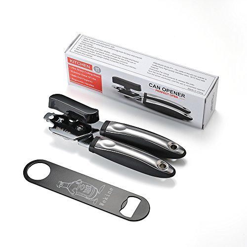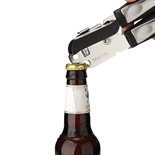 Premium quality:Wekine state-of-the-art can opener is crafted from high-quality stainless steel, 18/10 food safe material.Safety can opener with smooth edge, bottle, opener, jar opener.